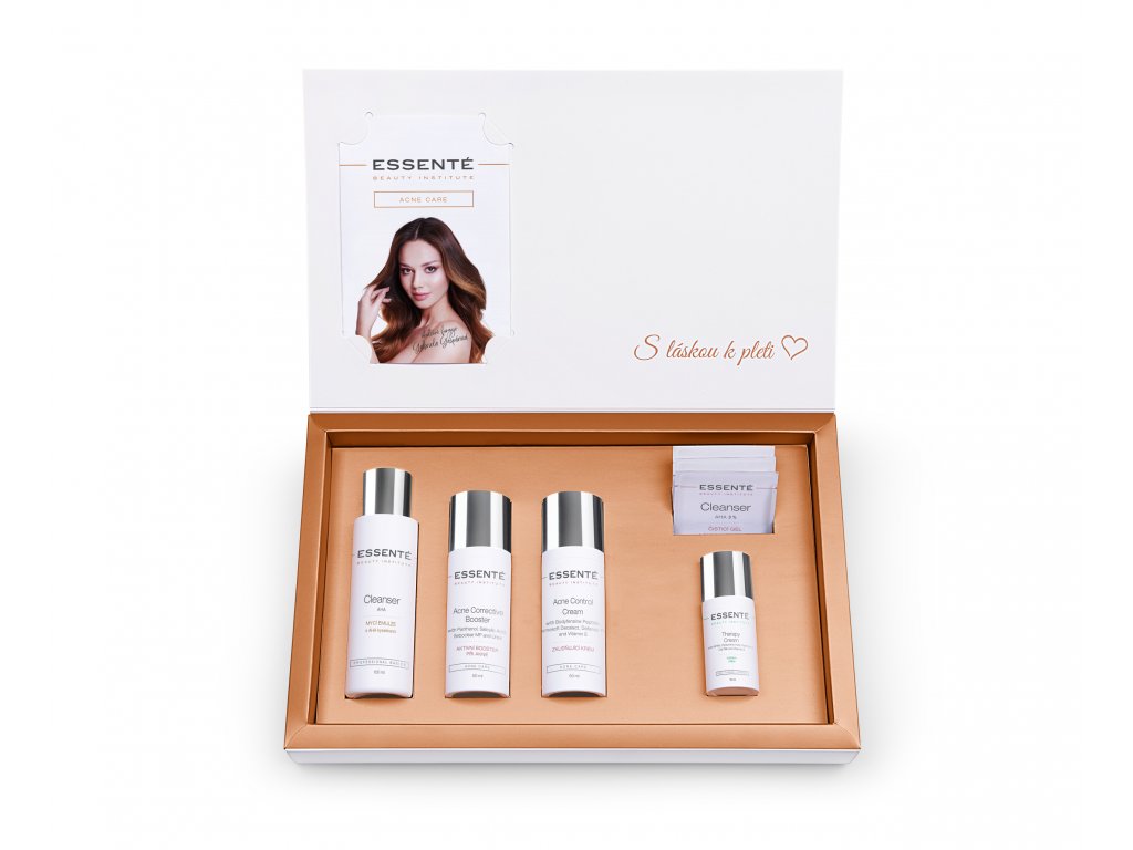 Sada přípravků pro intenzivní péči při akné zaměřená na projevy akné v akutní fázi, působící proti bakteriím rodu Propionibacterium Acnes. Problematické oblasti ihned zklidní a pomůže s obnovou běžných funkcí pokožky Sada je vhodná pro problematickou, aknózní pleť. Její součástí je dárek Essenté Therapy krém v hodnotě 520 Kč a testery.