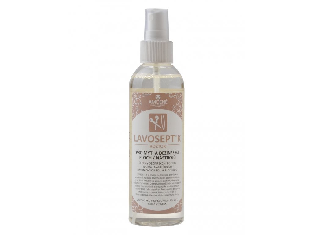 LAVOSEPT® K je dezinfekční přípravek na bázi kvartérních amoniových solí a aldehydů ve formě rozředěného koncentrátu určený k okamžité aplikaci pro dezinfekci ploch a nástrojů. Používá se na dezinfekci všech omyvatelných ploch a povrchů, dále k dezinfekci nástrojů, sanitárních zařízení, WC sedátek,