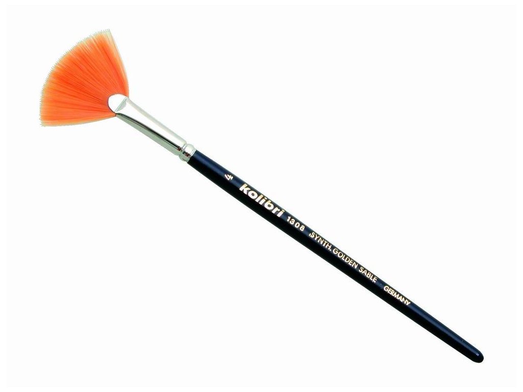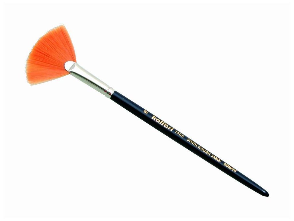 Středně velký štětec na masky, syntetický vlas - imitace zlatého sobola.Tvar štětin je do vějíře, stříbrné kování a modrá lakovaná rukojeť 14 cm dlouhá.